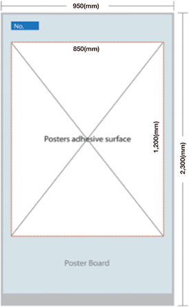 - Poster boards will be prepared in portrait format with a maximum size of 85 cm (width) by 120 cm (height). Presenters are recommended to attach their posters by using adhesive tapes (which are available on-site).